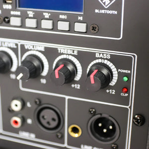 This British-designed and engineered high-performance, Class AB powered speaker, with Bluetooth and USB packs a punch. Loaded with time-saving features, for example, remote control and Bluetooth which allows you to play and sing to your backing track and mix and balance all multiple other sound sources at the same time.
