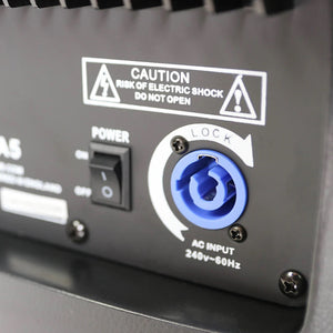 We strongly recommend plugging all PA equipment into a power conditioner and not directly into the mains in order to protect your equipment. It protects against surges, and spikes and prevents noise from the AC supply.